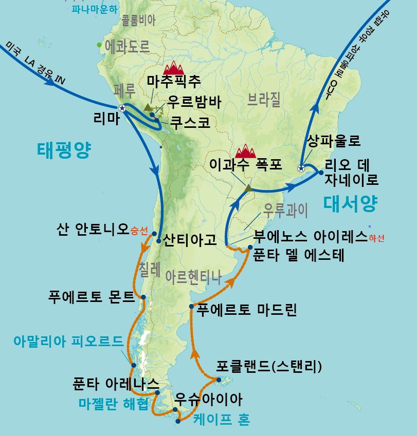 [11:45] 란항공 LA7508편으로 부에노스 아이레스(AEP) 출발 (비행시간 약 1시간 50분 소요)[13:35] 이과주(IGR) 공항 도착 및 가이드 미팅