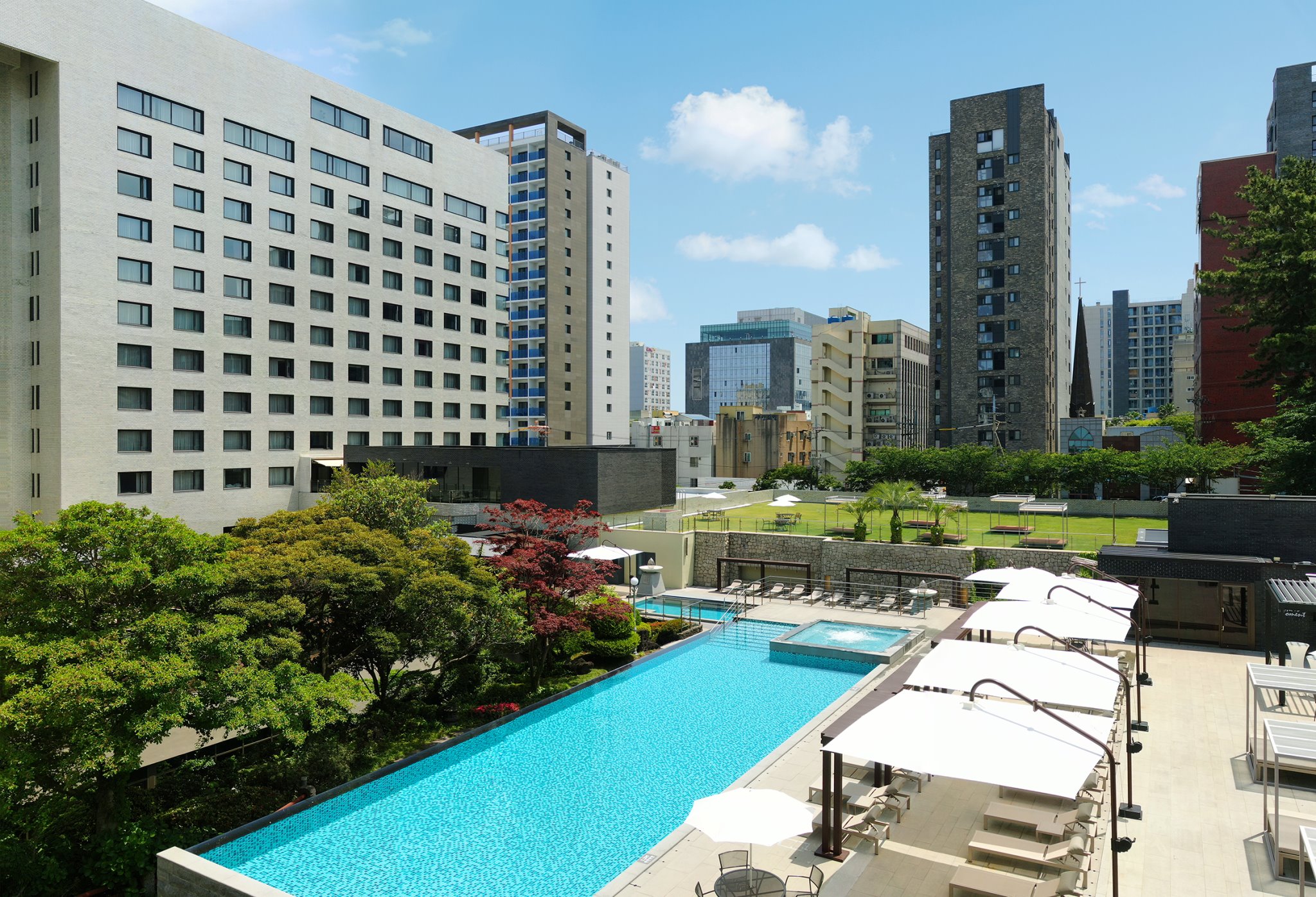 위치 및 접근성: 제주 시내인 신제주에 자리하고 있어 제주 국제공항에서 차로 약 10분 거리로 접근성이 매우 뛰어납니다. 주변에는 쇼핑, 문화 시설 등도 가깝습니다.