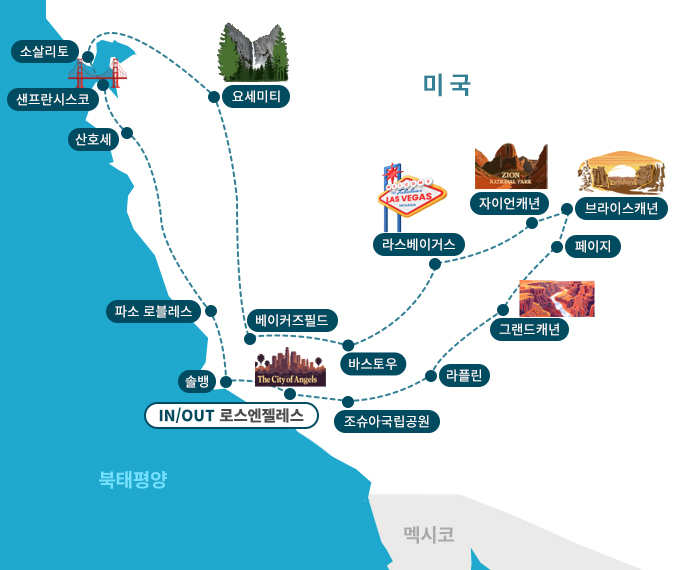 • 기획특가[THE 비즈팩-대한항공] 미서부 3대캐년과 샌프란시스코 10일 [리무진버스/죠수아국립공원]
