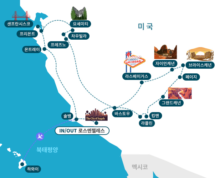 ※ 현지 사정에 따라 '프레즈노' 숙박으로 변경될 수 있습니다. | ||