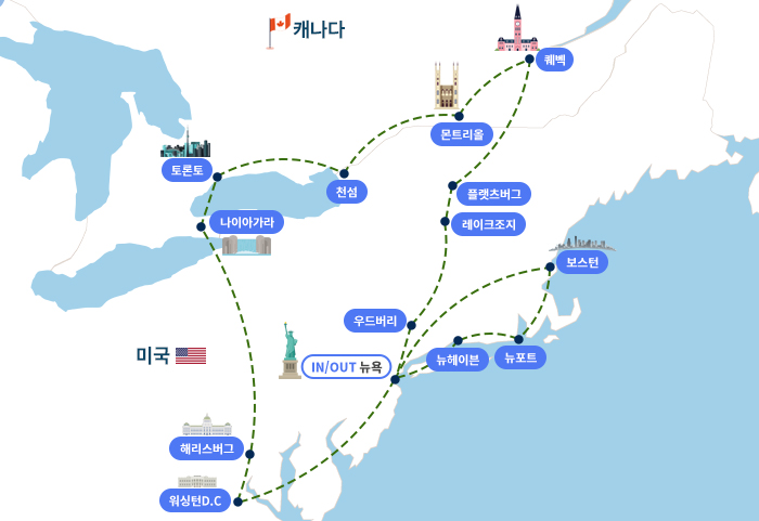 ※ 나이아가라 선택관광 및 관광지는 현지 상황에 따라 순서 변경하여 진행될 수 있습니다. | ||||||