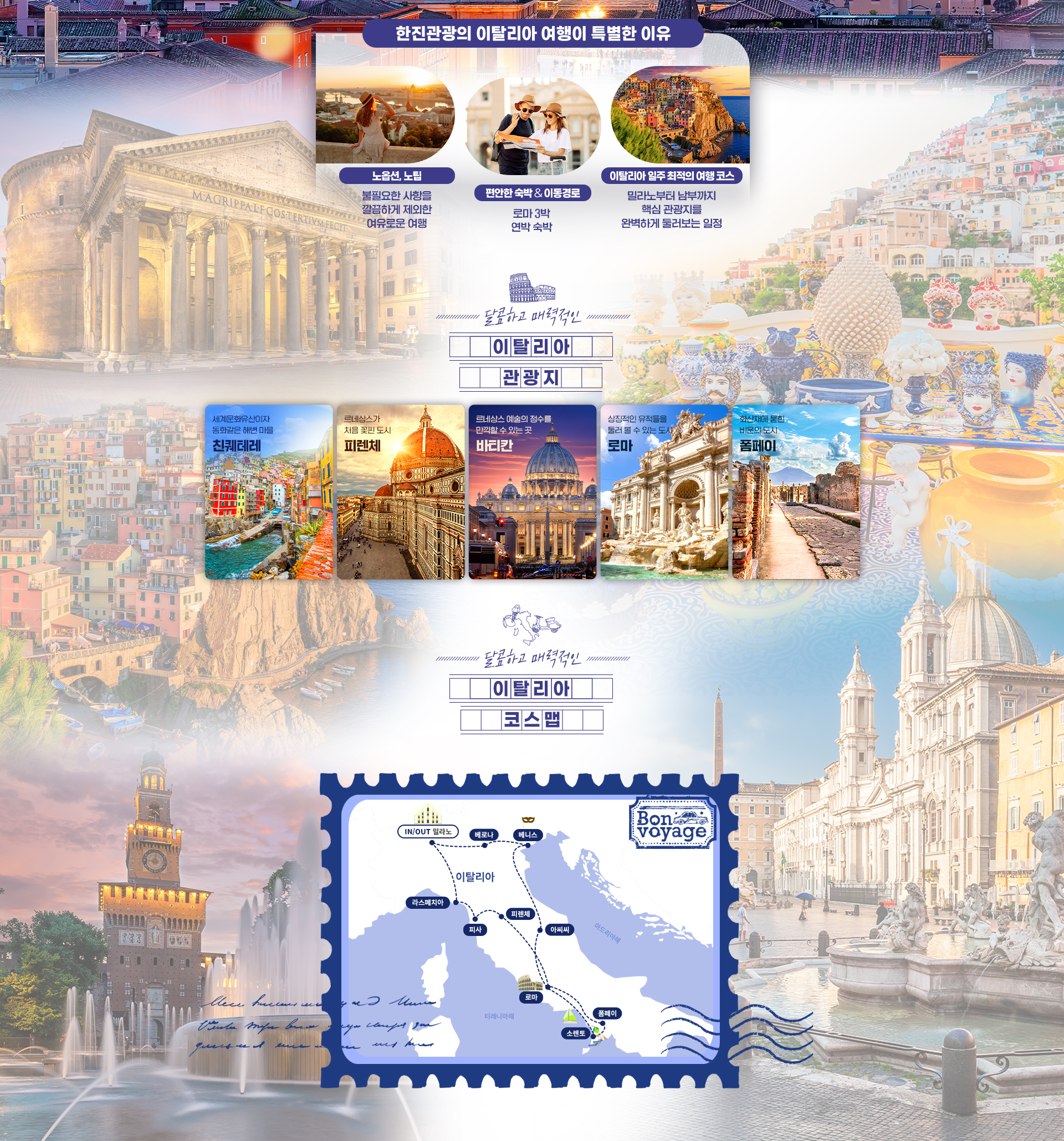[노팁/노옵션] 이탈리아 일주 9일 [로마3박/친퀘테레/로마벤츠투어/베니스수상택시]